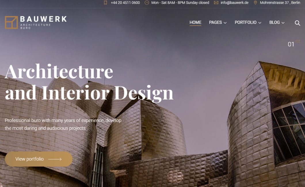 Bauwerk WordPress Theme has RTL Support. RTL means that your website supports right-to-left languages such as Arabic and similar languages… Bauwerk WordPress Theme has WooCommerce. With WooCommerce you can make online sales from your website. You will make your visitors happy with your fast and reliable internet trade. Bauwerk WordPress Theme has Elementor. With Elementor, you can make changes to your website easily. In the design of your website, you can organize many things such as video areas, photo locations, colors, the positions of the boxes or lines. Also, Elementor has Drag & Drop options to easily upload your media files to your WP website. Bauwerk WordPress Theme has Visual Composer. It offers high-quality colors and screenshots on your website. Visual Composer helps your website work perfectly on all screen sizes and mobile devices. In addition, its compatibility with other plugins and features provides a better view of your website. Bauwerk WordPress Theme is SEO Optimized. With SEO, you get to the top of the listings in search engines and you will reach more people. Bauwerk WordPress Theme has One Click Demo Import. You can easily download your WP theme and start to use your new site. You won’t need coding knowledge. Bauwerk WordPress Theme has Drag & Drop Page Builder. You can easily upload all your media files to your website by using this feature. Bauwerk WordPress Theme has Unique Concepts, est Icons Collection, Awesome Effects, Multiple Portfolio Types, Incredible Galleries, Smooth Animation, PSD Files Included, Built with Valid HTML5 & CSS3, Advanced Typography Option, Lots of Custom Icons Included, Usability Best Practice, Unlimited Colors, Parallax Effects, Video Tutorial, 800+ Google Fonts, Lifetime Free Update, Customizable Google Maps, Social Media Integration, Header and Footer Builder, Advanced Header Option, Awesome CSS3 Animation, Child Theme Support, Extensive Documentation, Wedding Counter Down, and much more… You will like the Bauwerk WordPress Theme.