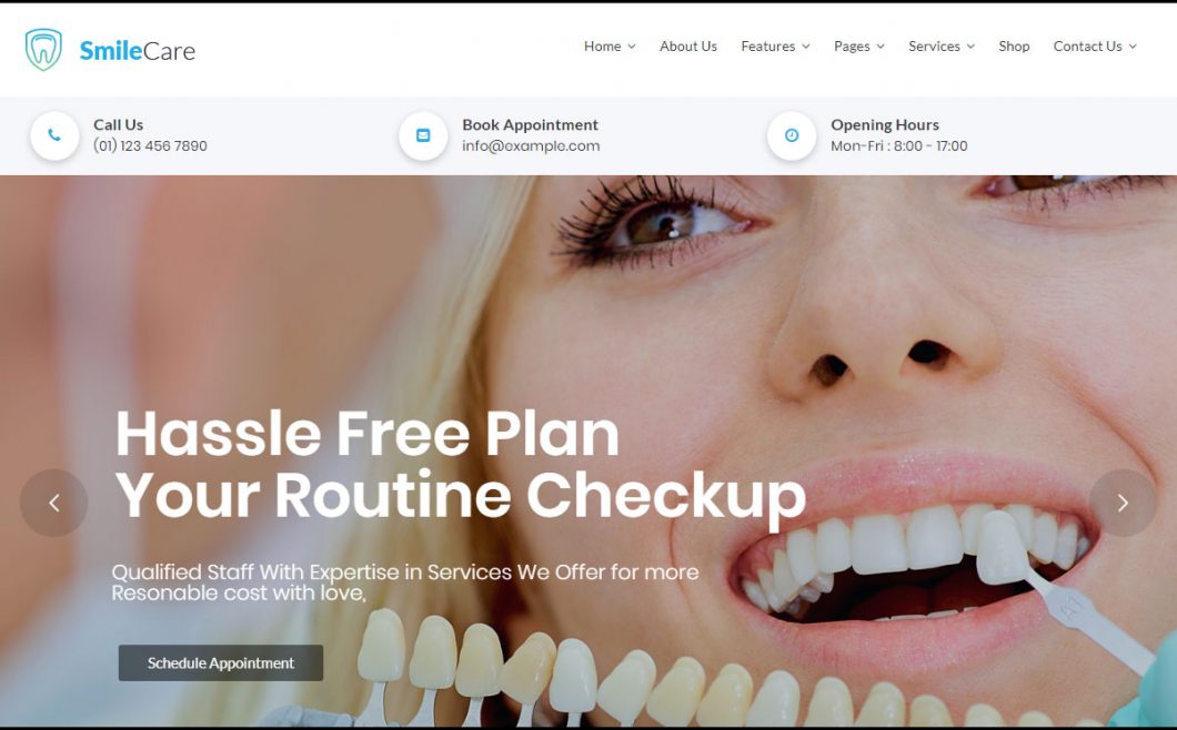 SmileCare WordPress Theme has Visual Composer. With Visual Composer, you have Controls of all the visuals of your website and you can easily and quickly adjust your website in your taste. No coding knowledge required. Visual Composer also has Drag and drop capability. You can easily upload media files. SmileCare WordPress Theme has Revolution Slider. With The Revolution Slider, you can use animated visuals. The visuals you want to appear will be animated. You can also use these visuals as links. Clicking on it will be directed to the page you want. SmileCare WordPress Theme has Fully Responsive. With its responsive feature, your website works perfectly on all mobile devices. The model, brand and screen size not important. On devices that support it with the responsive features, your website will be displayed in HD with very excellent quality. SmileCare WordPress Theme is SEO Optimized. The SEO feature allows your website to appear on top of search engines. This way you will have more visitors to the web and you will earn more. SmileCare WordPress Theme has One Click Demo Installation. With just one click, in a few minutes, your web page is set up and ready for use. No code information is required. SmileCare WordPress Theme has Friendly Customer Support, Mobile Device Optimization, Appointment Plugin, 30+ Pre-Designed Pages, Timetable, 800+ Google Fonts, Custom Widgets, W3 Validator, Awesome & Modern Design, Child Theme Ready, Essential Grid, Powerful Page Options, Theme Options, Bootstrap, 30+ Page Design, 10+ WP Page Templates, Documentation Included, 25+ Custom Shortcodes, Font Icons, Contact Form7 Compatible, Free Update, Well Organized Documentation, Outstanding Support, and much more… Be sure you will like SmileCare WordPress Theme.